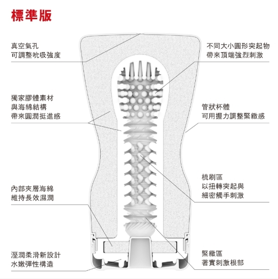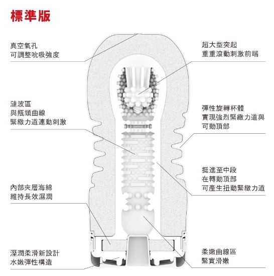 維持曲線形狀特徵,以進化的內部細節,能讓您享受到強力吸吮快感。