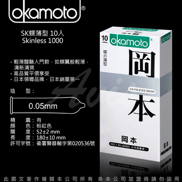 Okamoto岡本 Skinless Skin 蝶薄型保險套(10入裝)