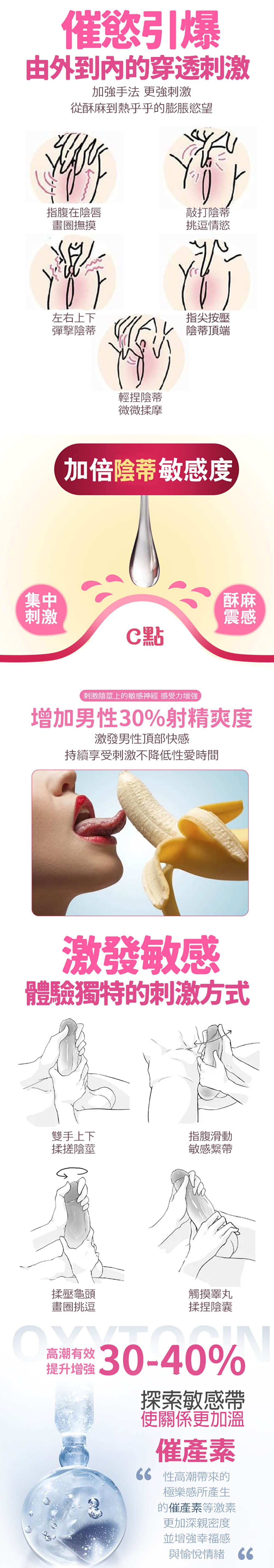 能增加情慾及提高敏感度,持續長效可達30分鐘,口愛也不是問題喔!