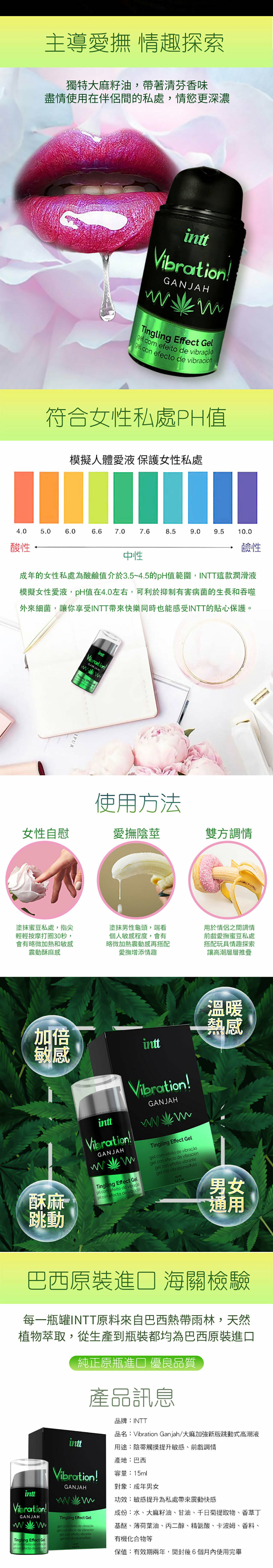 採用巴西純天然植物萃取,獨特的「震動酥麻」感!