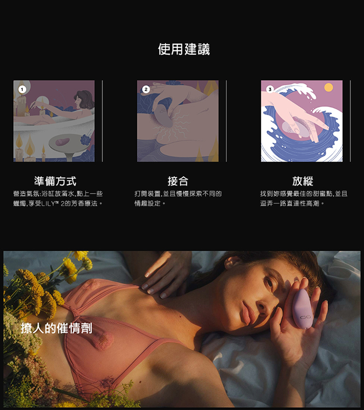 可在愛愛時放於伴侶之間,散發出的獨有芳香滿足您的所有感官需求。